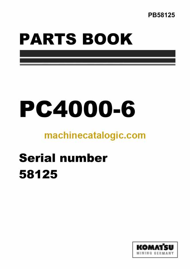 Komatsu PC4000-6 Hydraulic Excavator Parts Manual (PB58125)