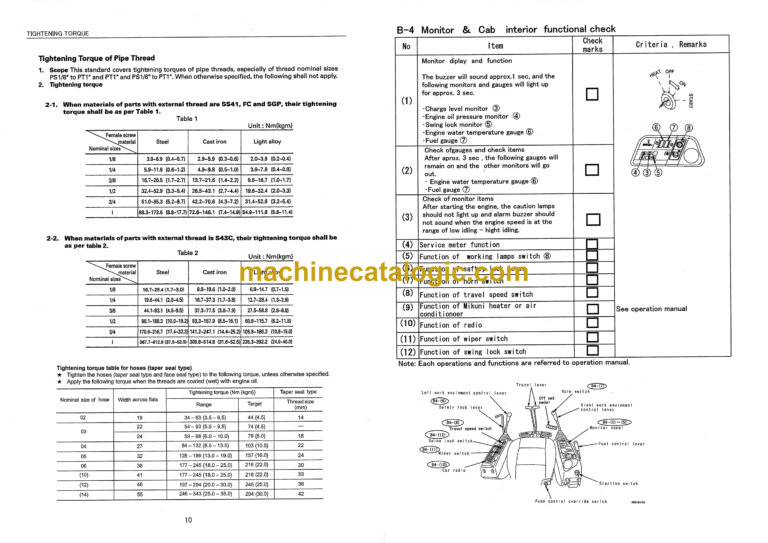 INSPECTION CHECK SHEET FOR PC400LC-6 OFF-SET BOOM SPECIFICATION