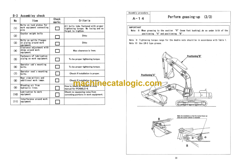 INSPECTION CHECK SHEET FOR PC400LC-6 OFF-SET BOOM SPECIFICATION