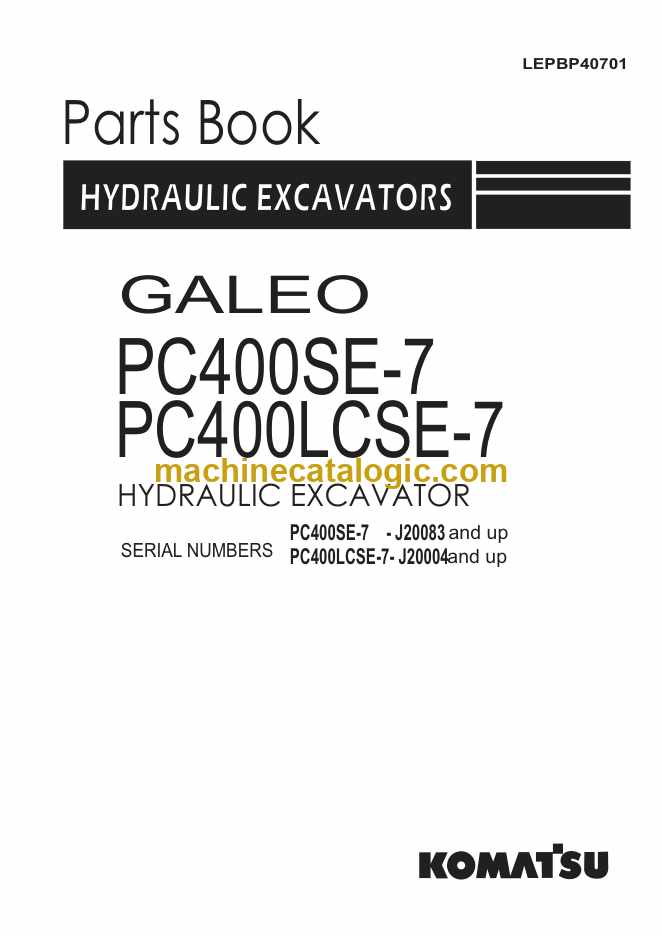 Komatsu PC400SE-7, PC400LCSE-7 Galeo Hydraulic Excavator Parts Manual (LEPBP40701)