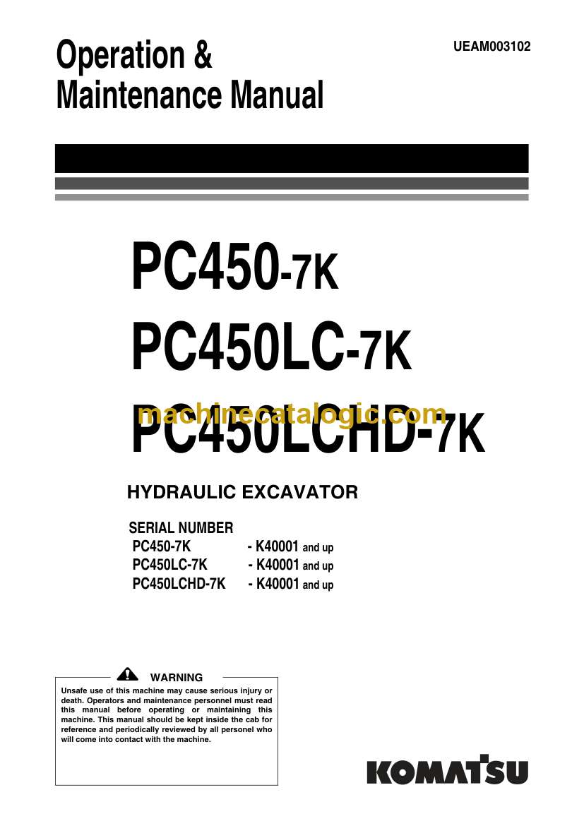 Model: PC450-7K, PC450LC-7K, PC450LCHD-7K Hydraulic Excavator