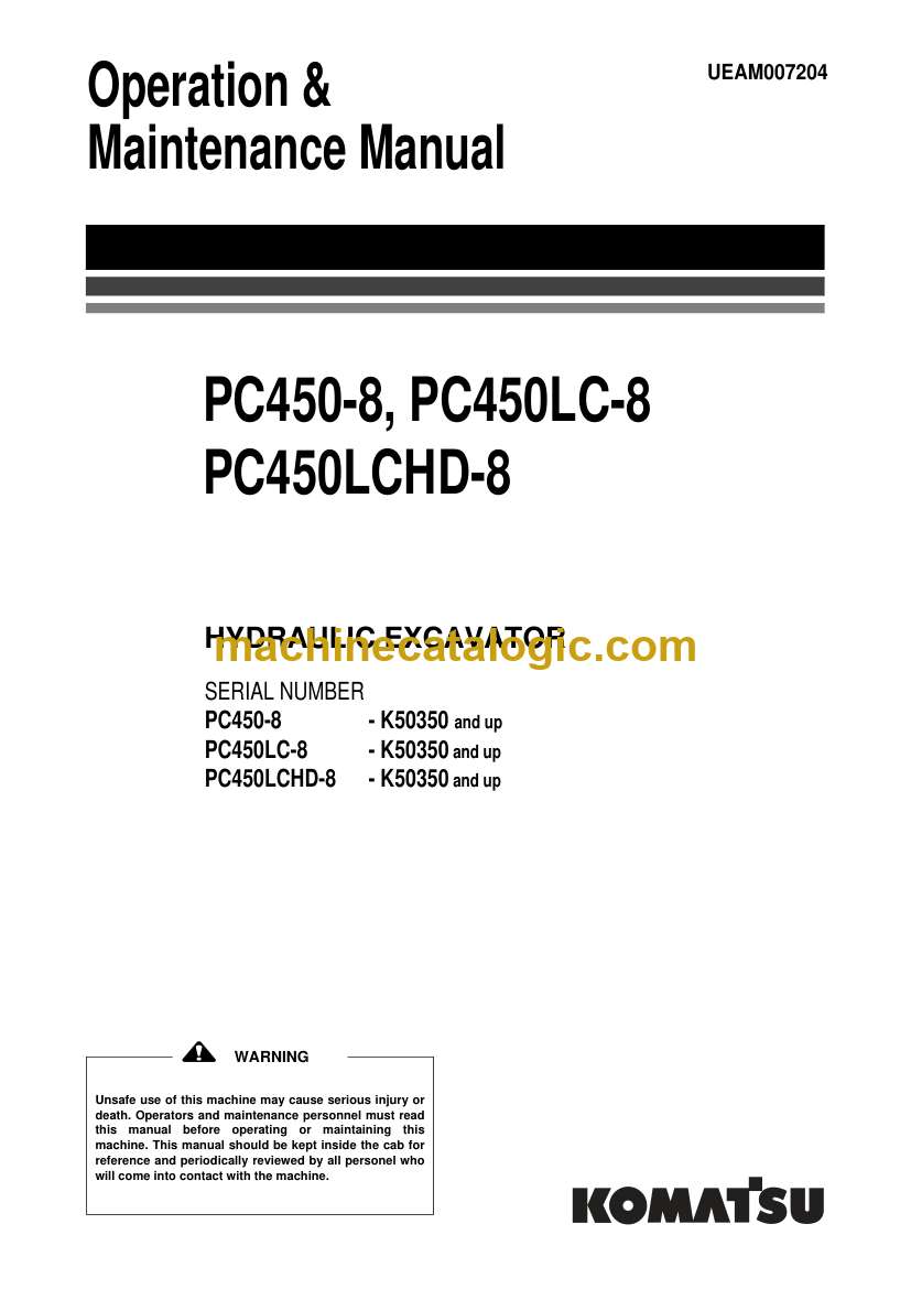 Komatsu PC450-8, PC450LC-8, PC450HRD-8 Hydraulic Excavator Operation and Maintenance Manual (UEAM007204)