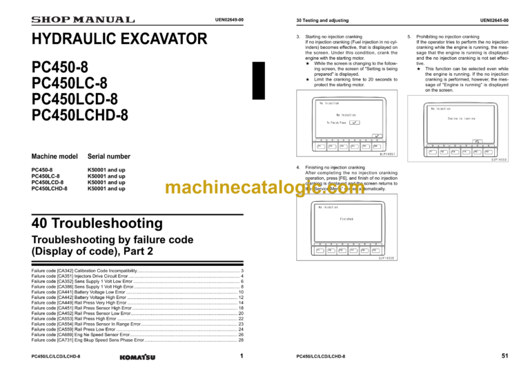 Komatsu PC450-8 PC450LC-8 PC450LCD-8 PC450LCHD-8 Hydraulic Excavator Index: