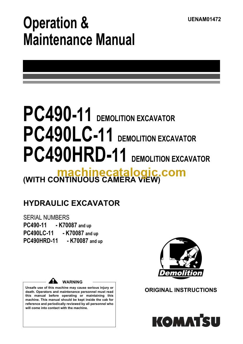 Model: PC490-11, PC490LC-11, PC490HRD-11 Hydraulic Excavator