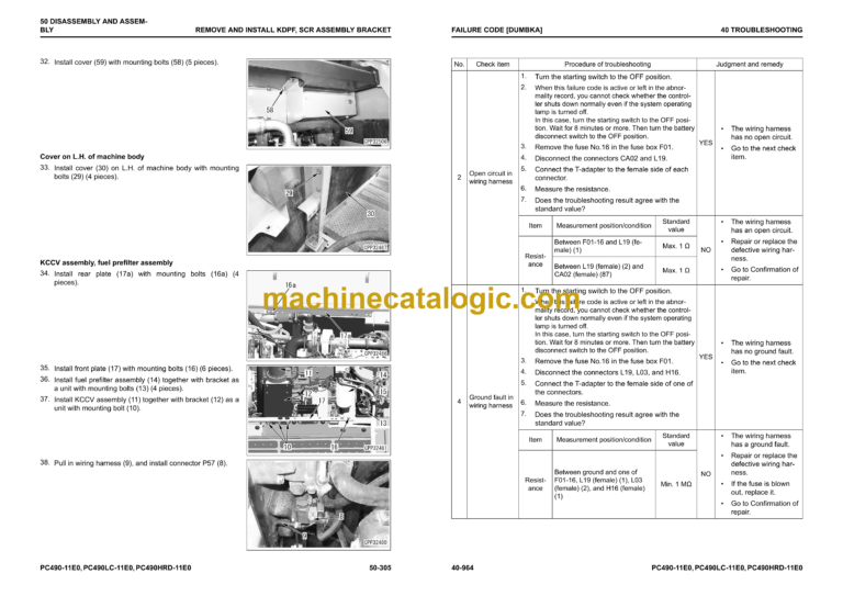 Komatsu PC490-11E0, PC490LC-11E0, PC490HRD-11E0 Hydraulic Excavator Shop Manual (UENBM00503)