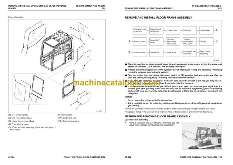 Komatsu PC490-11E0 PC490LC-11E0 PC490HRD-11E0 Hydraulic Excavator Index: