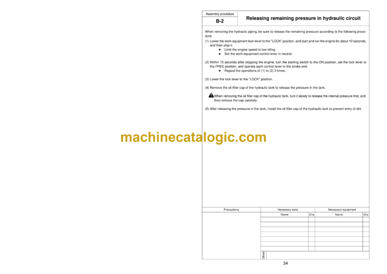 B- 2. Releasing remaining pressure in hydraulic circuit ………………………………………….. 34