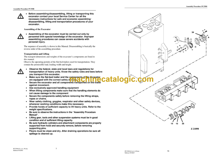 Komatsu PC5500 Hydraulic Excavator General Assembly Procedure Manual