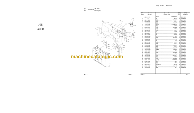 Komatsu PC58-8 Hydraulic Excavator Parts Book (DBBX0001 and up)