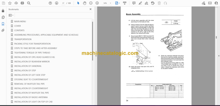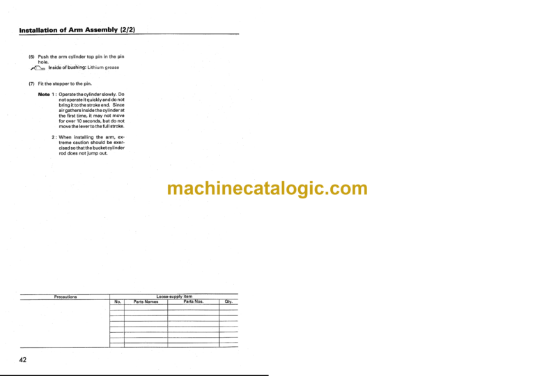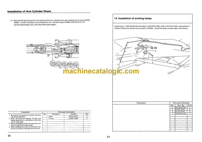 INSTALLATION OF BUCKET CYLINDER HOSES BETWEEN BOOM AND BUCKET