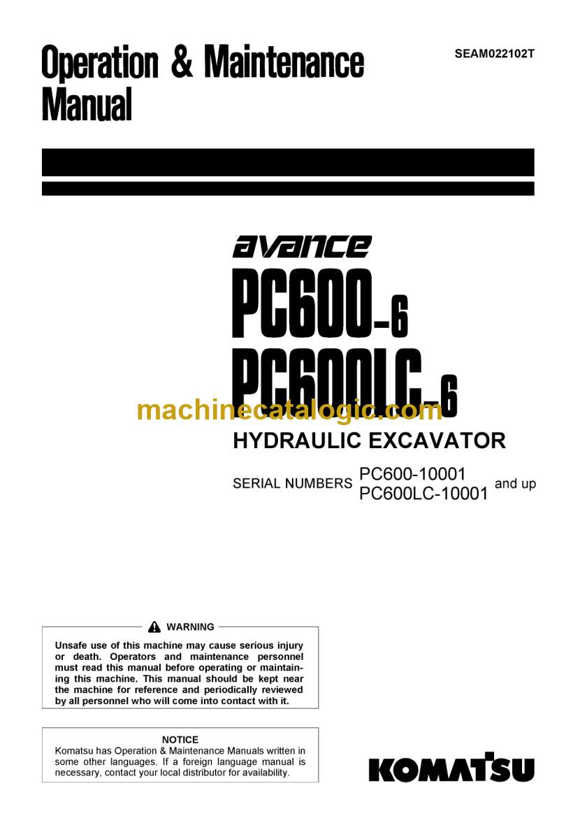 Model: PC600-6, PC600LC-6 Hydraulic Excavator