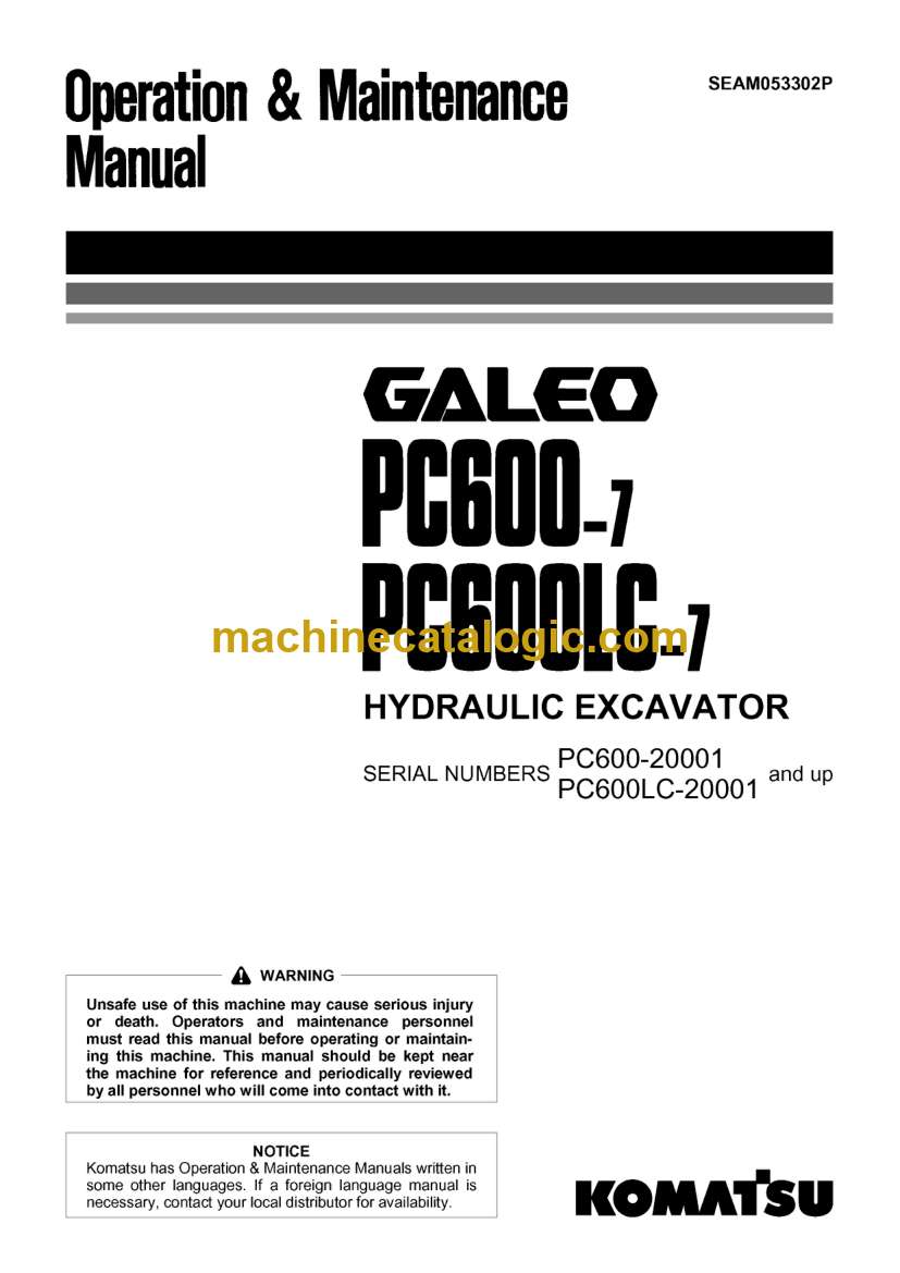 Model: PC600-7, PC600LC-7 Hydraulic Excavator
