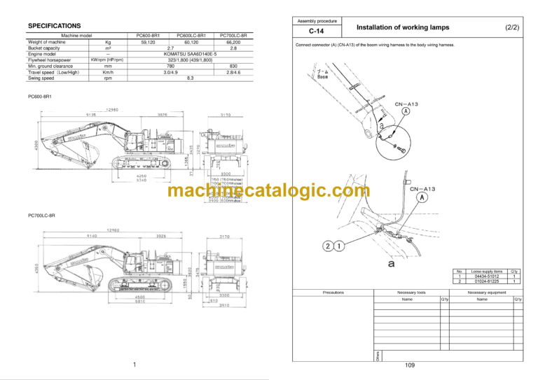 Komatsu PC600-8R1 PC600LC-8R1 PC700LC-8R Hydraulic Excavator Index:
