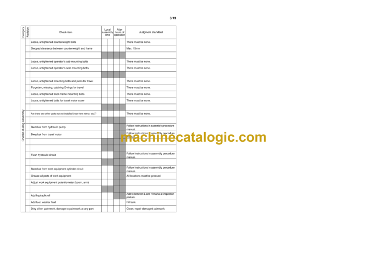 FIELD ASSEMBLY INSPECTION REPORT (Backhoe)