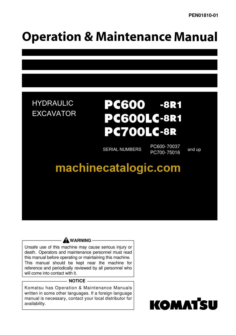 Model: PC800-8R1, PC800LC-8R1, PC800SE-8R1, PC850-8R1, PC850SE-8R1 Hydraulic Excavator