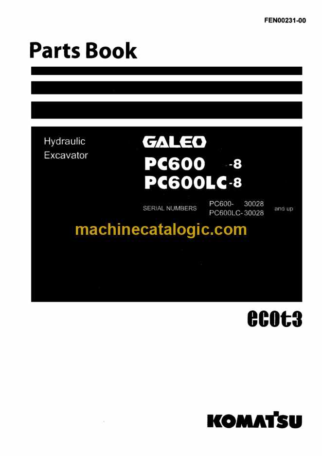Komatsu PC600LC-8, PC600LC-8 Hydraulic Excavator Parts Manual (FEN00231-00)
