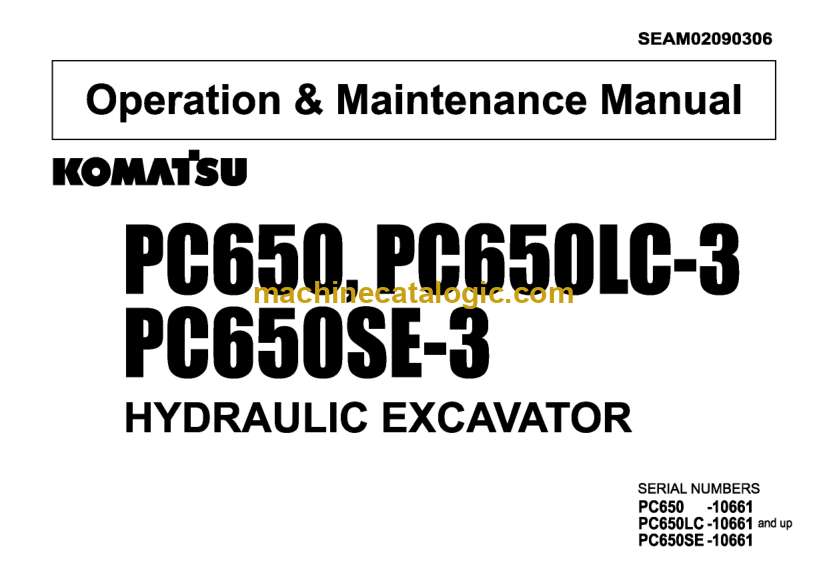 Model: PC650-3, PC650LC-3, PC650SE-3 Hydraulic Excavator