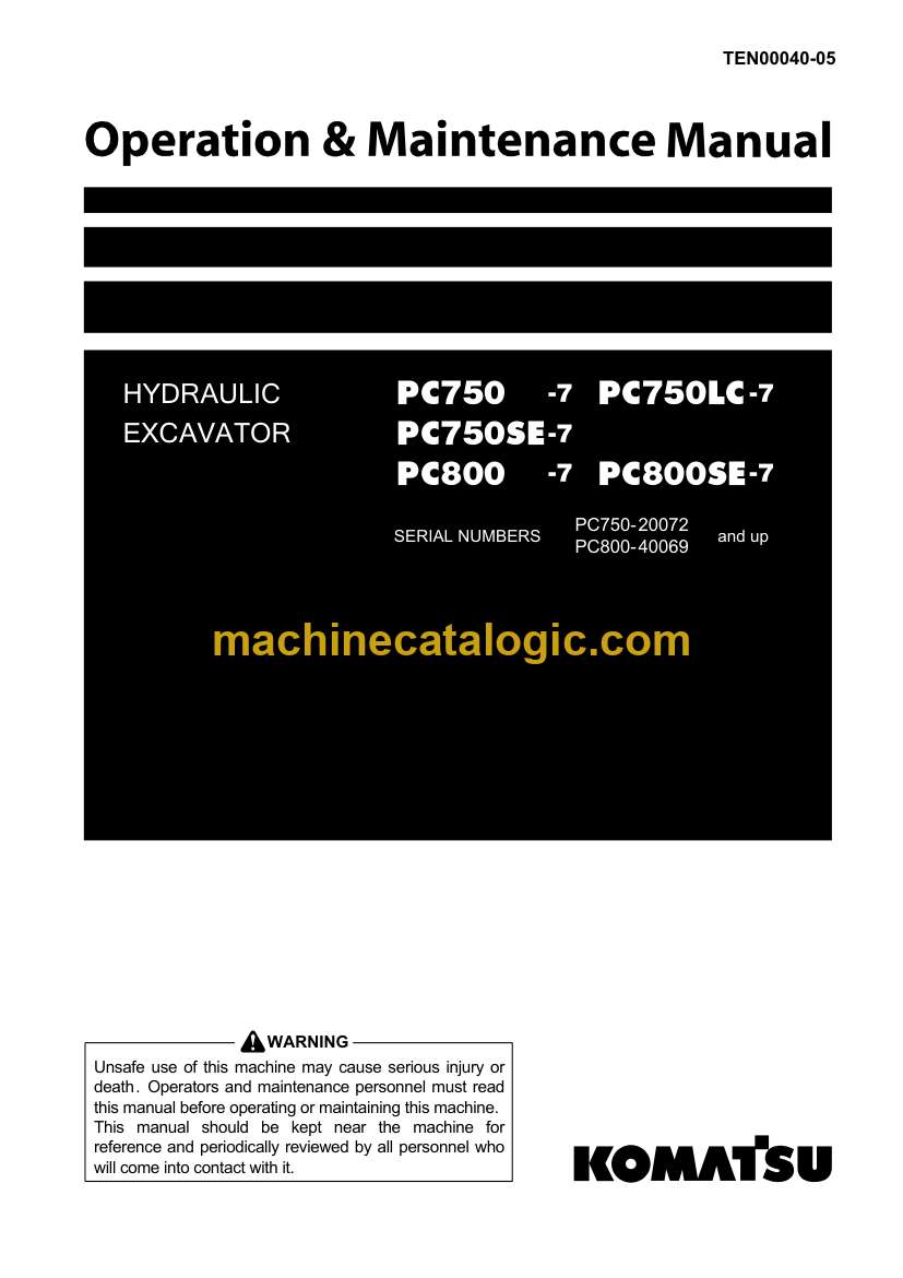 Komatsu PC750-7, PC750LC-7, PC750SE-7, PC800-7, PC800SE-7 Hydraulic Excavator Operation and Maintenance Manual (TEN00040-05)