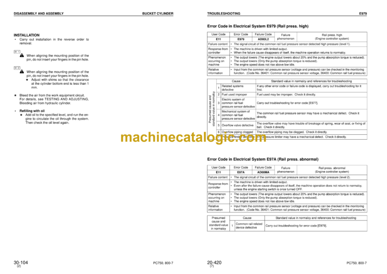 Komatsu PC750-7 PC800-7 Hydraulic Excavator Index: