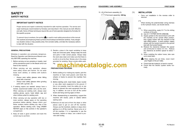 Komatsu PC78US-6, PC78UU-6 Hydraulic Excavator Index: