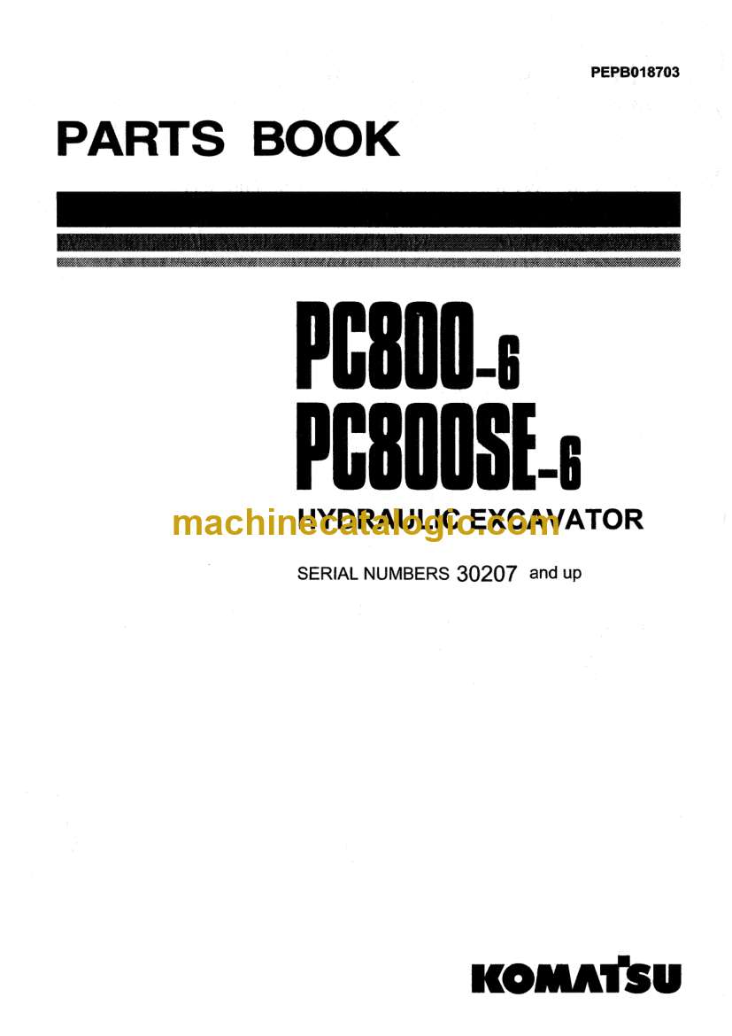 Komatsu PC800-6, PC800SE-6 Hydraulic Excavator Parts Manual (PEPB018703) (SN 30207-)