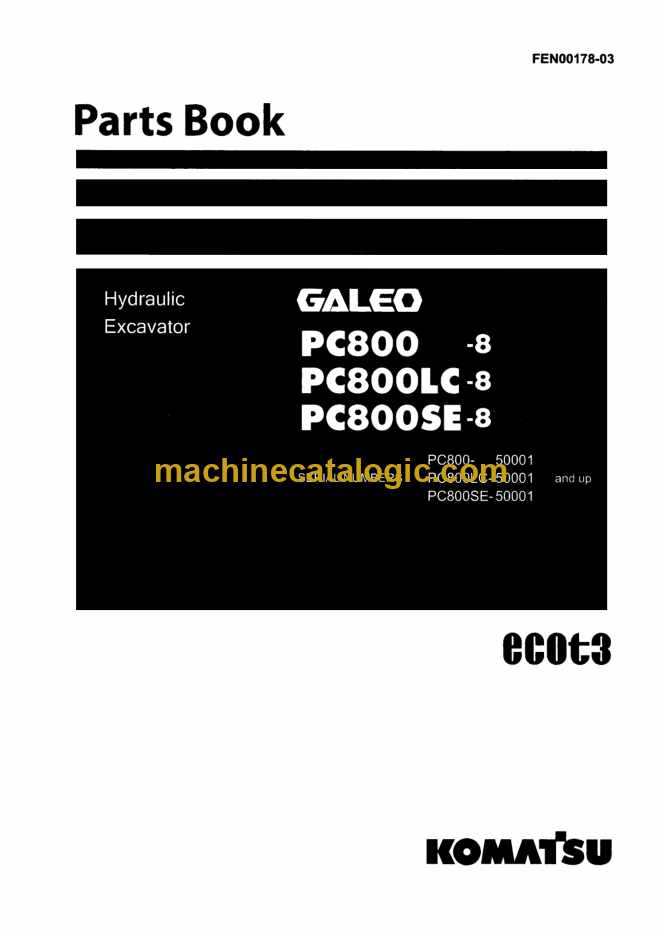 Komatsu PC800-8, PC800LC-8, PC800SE-8 Hydraulic Excavator Parts Manual (FEN00178-03) (SN 50001-)