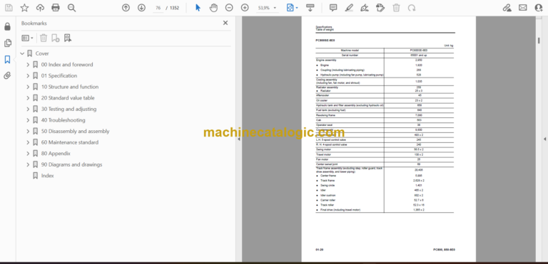 Komatsu PC800-8E0 PC800LC-8E0 PC800SE-8E0 PC850-8E0 PC850SE-8E0 Hydraulic Excavator Index: