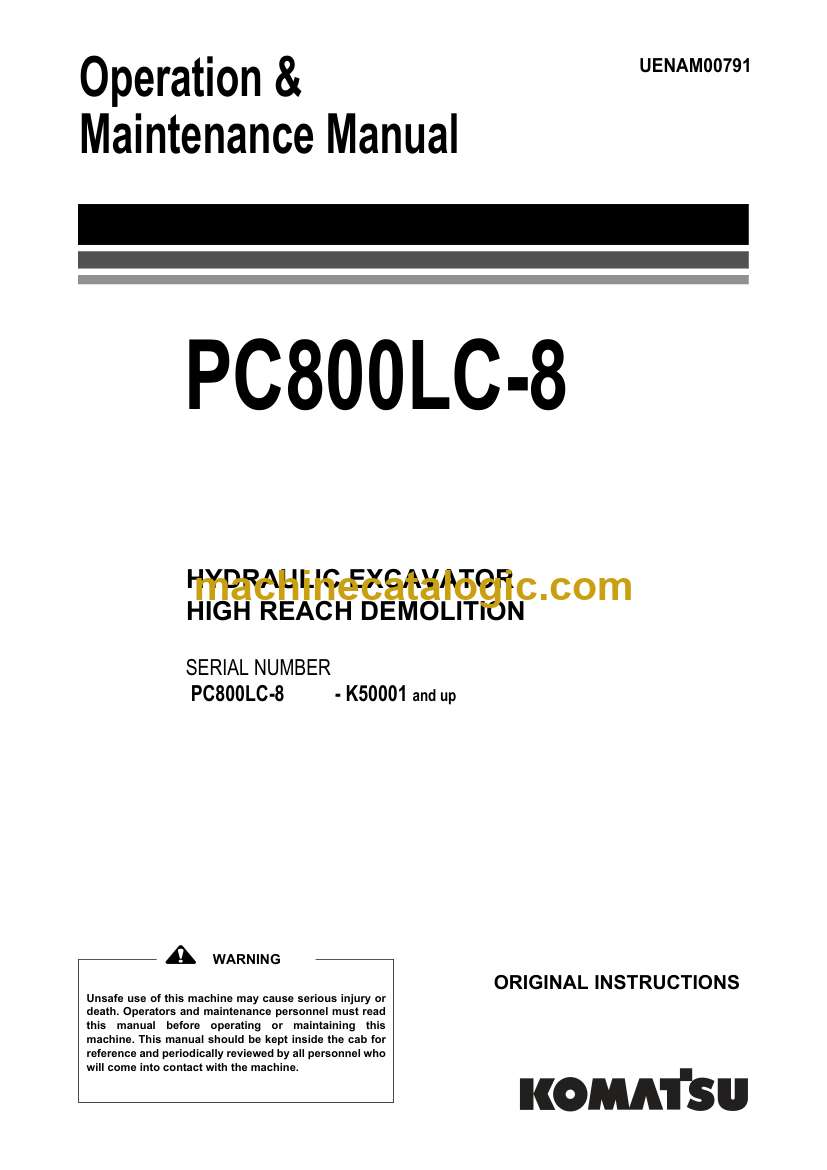 Komatsu PC800LC-8 Hydraulic Excavator Operation and Maintenance Manual (UENAM00791)