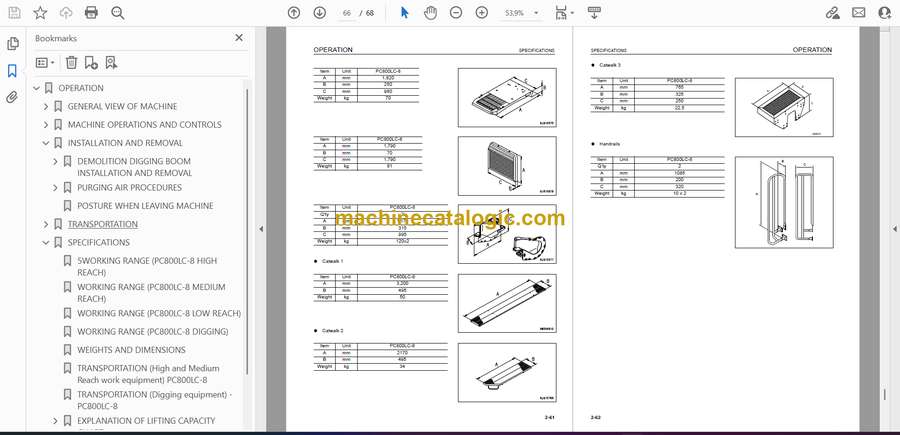 • TRANSPORTATION (High and Medium Reach work equipment) PC800LC-8