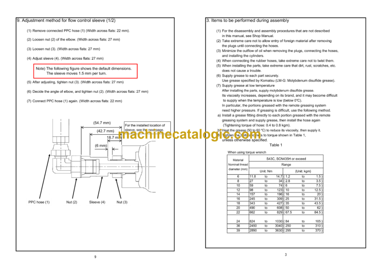 ASSEMBLING PROCEDURES APPLICABLE EQUIPMENT AND SCHEDULE