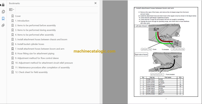 INSTALLATION OF BUCKET CYLINDER HOSES BETWEEN BOOM AND BUCKET