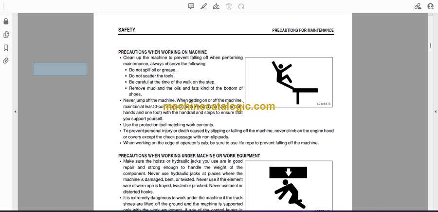 PRECAUTIONS WHEN GETTING ON OR OFF MACHINE 2- 17