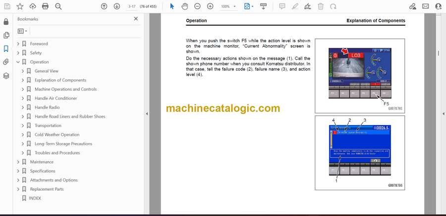 On a PC88MR-11 that spends its life trenching in tight sites, loading trucks, or working around utilities, this Operation and Maintenance Manual is what I’d keep handy to keep it earning and out of the shop. It walks you through how to look after the machine day-to-day and season-to-season, so you can spot issues before they turn into downtime. If, for example, the swing feels a bit lazy or you notice uneven track wear, this is what I’d use to trace whether it’s an adjustment, a lubrication miss, or something that really needs a dealer.