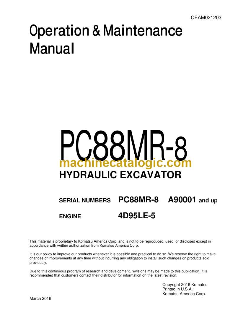 Komatsu PC88MR-8 Hydraulic Excavator Operation and Maintenance Manual (CEAM021203)