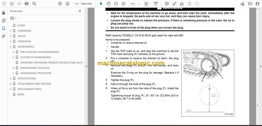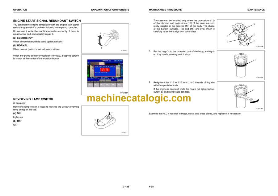 On a PC900LC-11 that’s digging mass excavation or loading trucks in a quarry, this Operation and Maintenance Manual is what I keep handy to keep the machine earning instead of parked. It walks you through the daily and scheduled checks so you can spot loose hardware, hose chafe, or a lazy swing before it turns into a shutdown. If an operator reports slow boom response at the end of a shift, I’d use this manual to verify the right inspection points, confirm basic settings, and rule out simple maintenance issues before calling in heavier diagnostics.