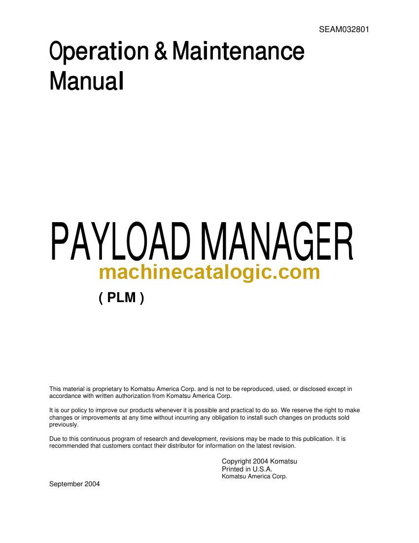 Komatsu PLM Payload Manager Operation and Maintenance Manual (SEAD032801)