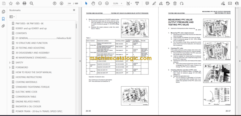 TESTING AND ADJUSTING HYDRAULIC PRESSURE IN WORK EQUIPMENT, SWING, TRAVEL CIRCUIT