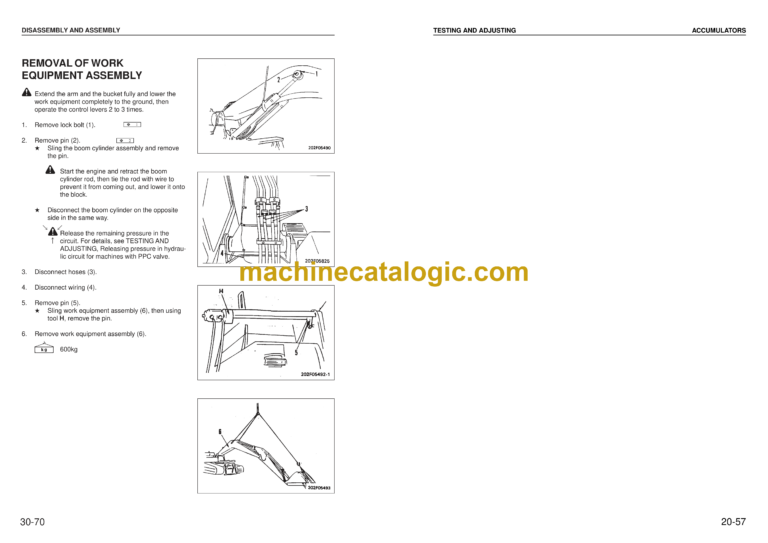 REMOVAL OF ARM, BUCKET ASSEMBLY