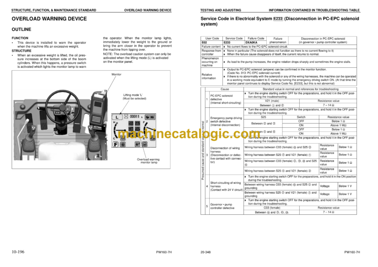 Komatsu PW160-7H Hydraulic Excavator Shop Manual (VEBM390100)