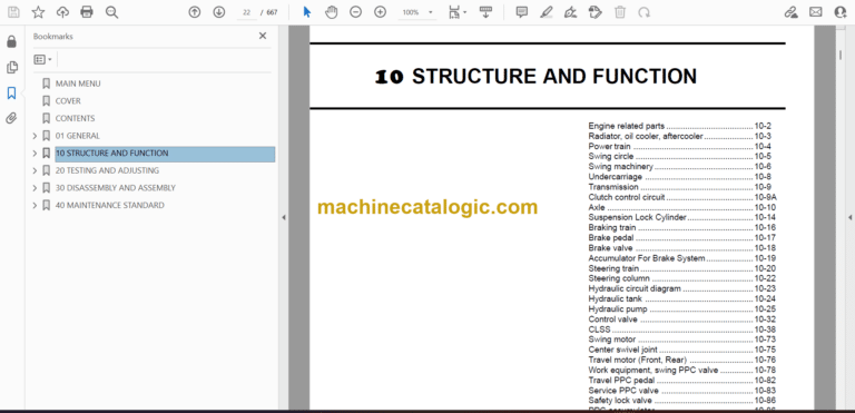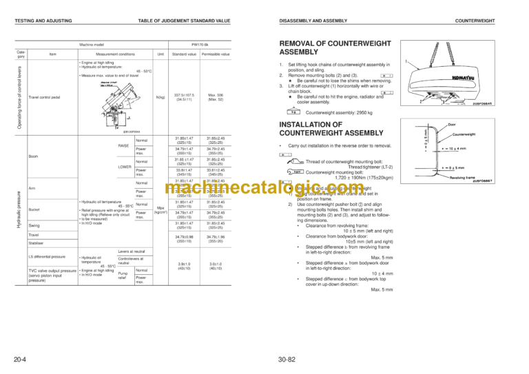 TESTING AND ADJUSTING HYDRAULIC PRESSURE IN WORK EQUIPMENT, SWING, TRAVEL CIRCUIT