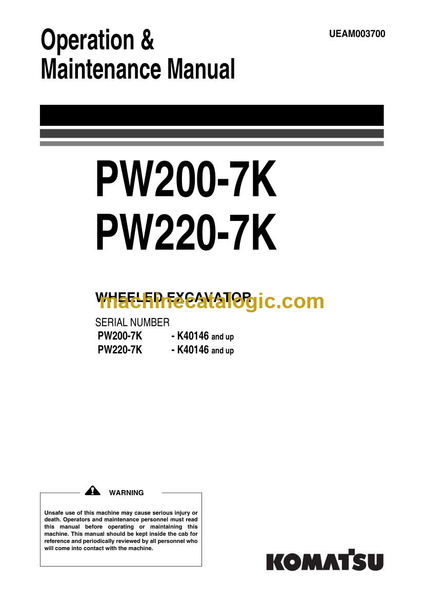 Model: PW200-7, PW220-7K Hydraulic Excavator