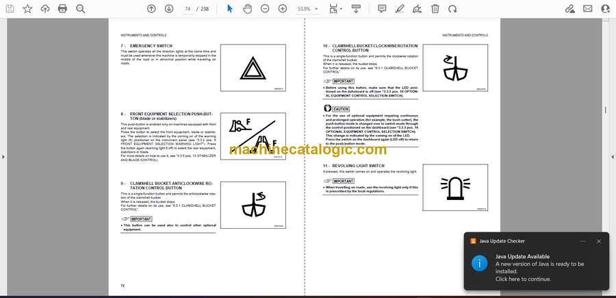 6.3.4 POSITIONING THE CLAMSHELL BUCKET FOR ROAD TRAVEL . . . . . . . . . . . . . . . . . . . 233