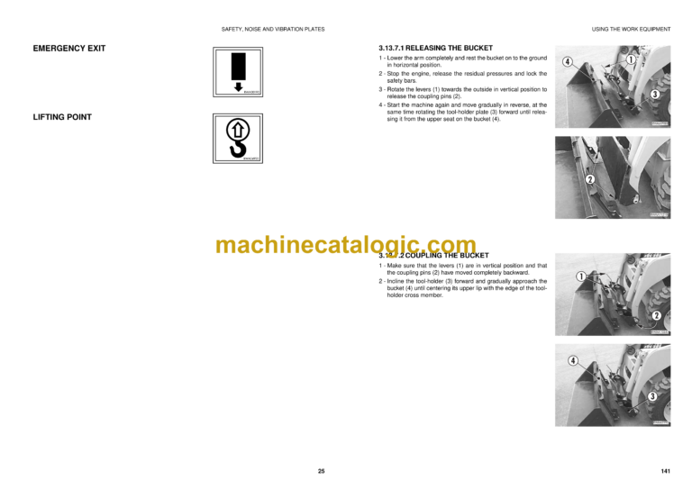 3.13.6 CHANGING THE BUCKET WITH STANDARD RAPID COUPLING