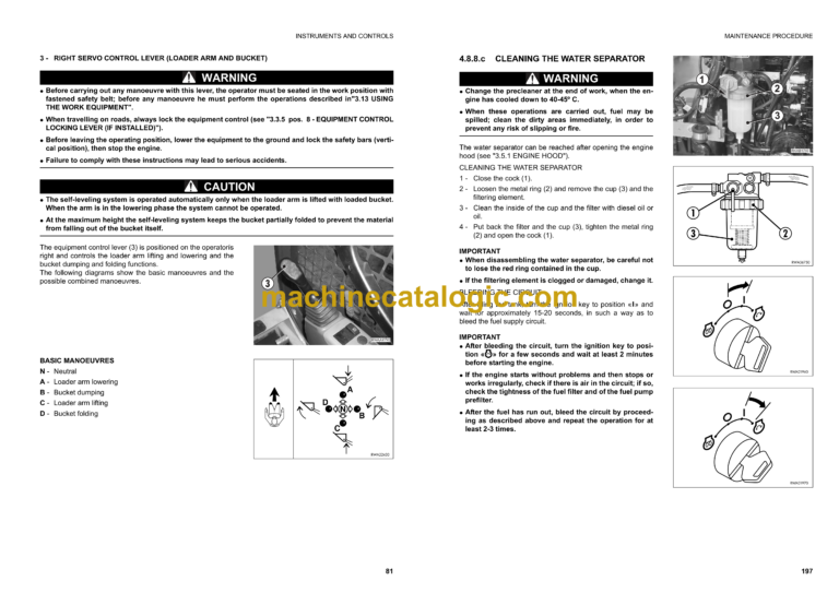 3.13.6 CHANGING THE BUCKET OR THE EQUIPMENT WITH STANDARD RAPID COUPLING