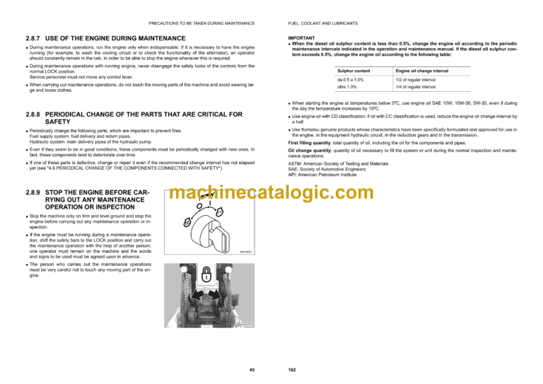 2.8.7 USE OF THE ENGINE DURING MAINTENANCE