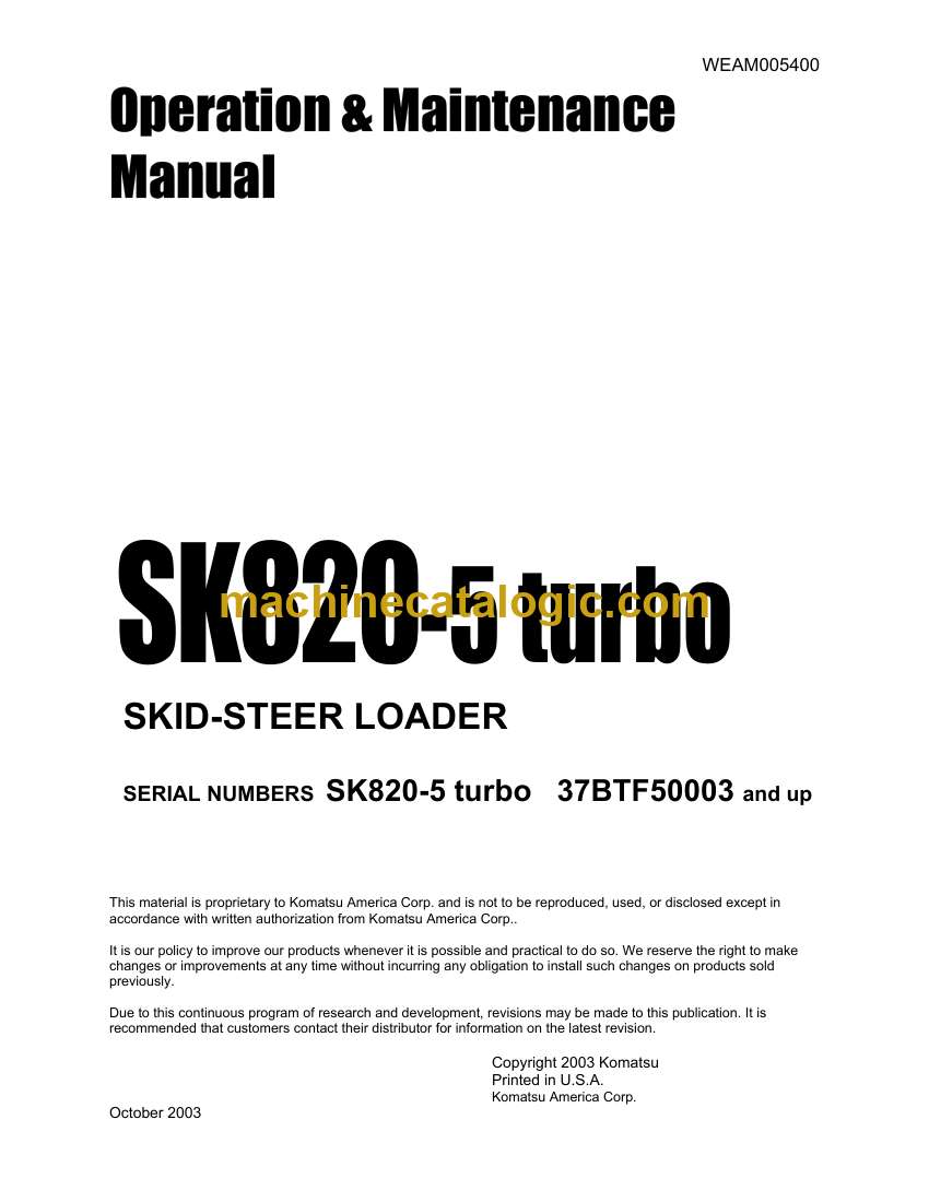 Model: SK820-5 turbo Skid Steer Loader