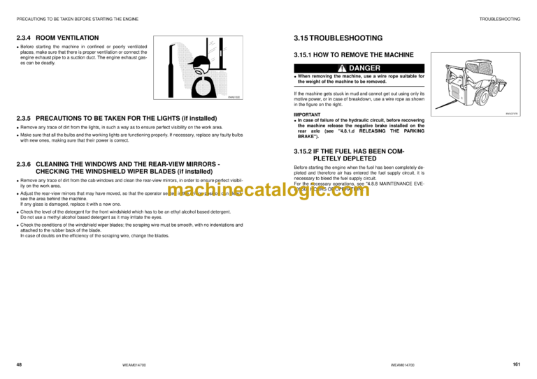 2.3.3 PRECAUTIONS TO BE TAKEN FOR THE OPERATOR’S CAB