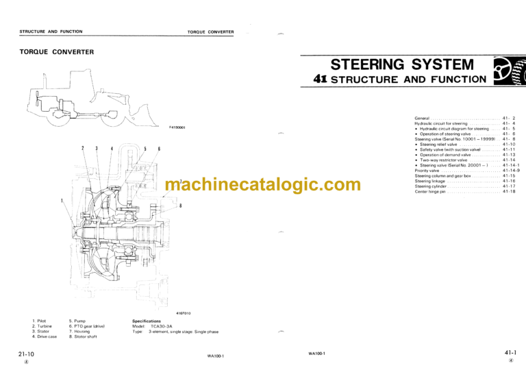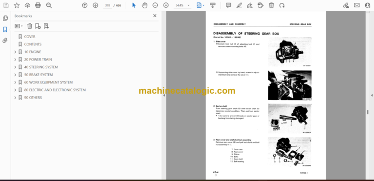 COVER CONTENTS 10 ENGINE 20 POWER TRAIN 40 STEERING SYSTEM 50 BRAKE SYSTEM 60 WORK EQUIPMENT SYSTEM 80 ELECTRIC AND ELECTRONIC SYSTEM 90 OTHERS