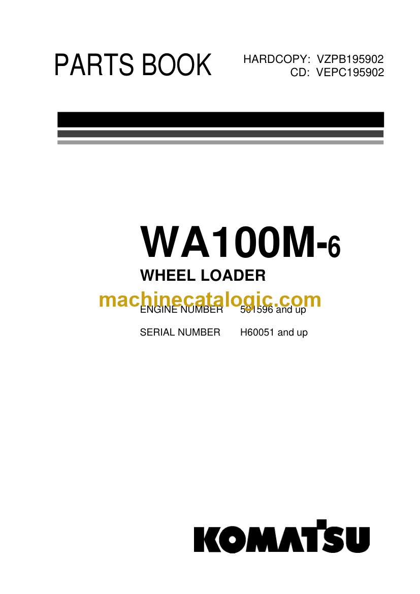 Komatsu WA100M-6 Wheel Loader Parts Manual (VZPC195902) (SN H60051-)