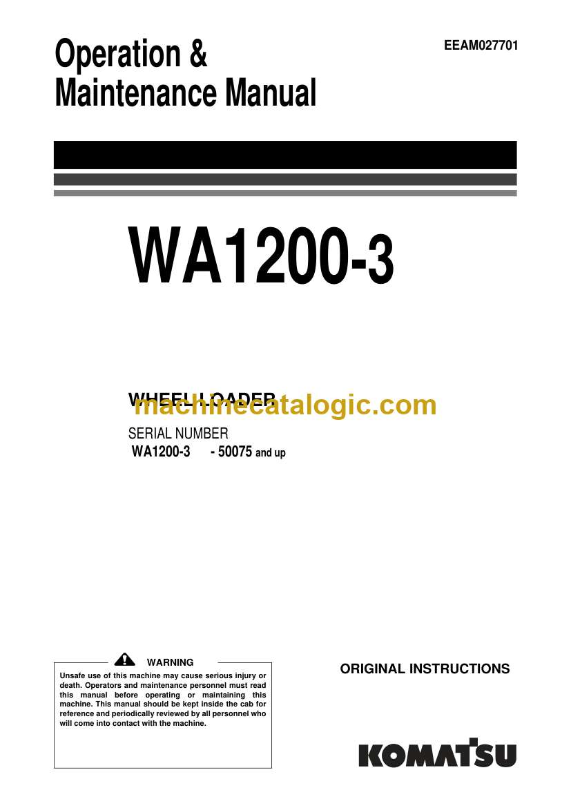 Komatsu WA1200-3 Wheel Loader Operation and Maintenance Manual (EEAM027701)